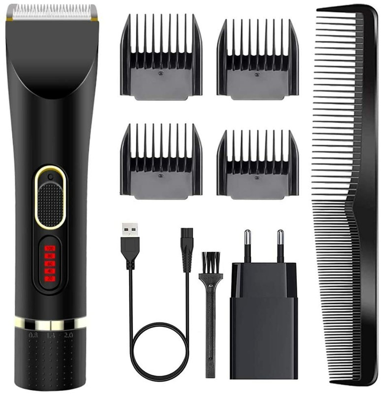 Tagliacapelli, Moevert Macchinetta per Capelli Professionale Rasoio Elettrico Taglia Capelli Uomo Senza Filo Regolabarba con 4 Pettine Schermo LCD Ricaricabile Hair Clipper per Uomo Bambini Descrizione✂️ Tagliacapelli Professionale Moevert con 4 pettini distanziatori e Caricabatteria, adatto a bambini, maschi, adulti, anziani, ma anche parrucchieri e professionisti del mestiere. ✂️ Il design ergonomico conferisce al tagliacapelli un aspetto elegante e allo stesso tempo una presa confortevole. Il taglia capelli per uomo è dotato di doppia lama autoaffilante realizzata con materiali di qualità che consentono ottime prestazioni anche dopo svariati utilizzi. Le lame è resistenti all’acqua e smontabili per una pulizia interna approfondita. Questo tagliacapelli cordless ha un BOTTONE DI REGOLAZIONE DELLO SPESSORE, è possibile regolare la lunghezza del taglio semplicemente girando il pulsante di regolazione sul corpo del tagliacapelli, da 0,8 mm a 2 mm ( 0,8/ 1,1/ 1,4/ 1,7/ 2,0mm). È inoltre dotato di 6 pettini guida ( 3, 6, 9, 12mm). Puoi facilmente regolare il pettine all’altezza corretta e tagliare la pettinatura che desideri. Plug and Play. Dotato di batteria al litio ad alte prestazioni, può essere utilizzato collegato alla corrente o dopo raggiunta la carica completa. La modalità senza fili consente maggiore praticità e comodità. Cosa ricevete nel set: 1 x Tagliacapelli 1 x EU Caricabatteria con cavo USB 4 x Pettini Distanziatori 1 x Spazzolina di Pulizia 1 x Pettine 1 x Manuale di Istruzioni in 5 Lingue ( italiano, inglese, tedesco, francese, spagnolo) NOTA: Poiché i prodotti con olio lubrificante aumenteranno i costi elevati nel trasporto internazionale, al fine di fornire prodotti più favorevoli, l’olio lubrificante non è più incluso nella nostra confezione. È possibile utilizzare altri oli come l’olio della macchina invece di esso per lubrificare la lama. Molte grazie per la tua comprensione.